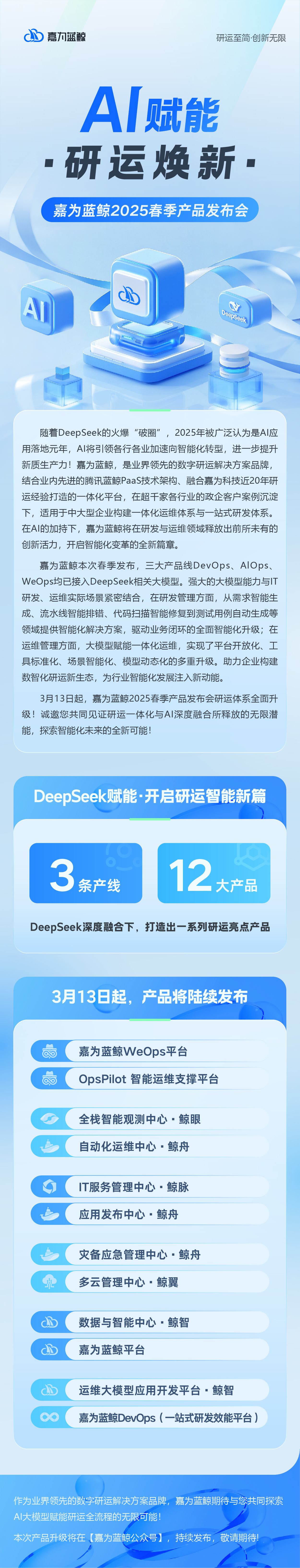 9月4日起!嘉為藍鯨2025秋季發布會啟幕,13大產品煥新,開啟IT研運智能新程